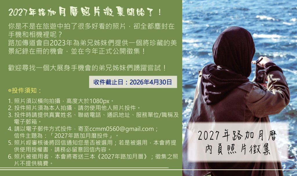 【2027年路加月曆照片徵集開始了!】
